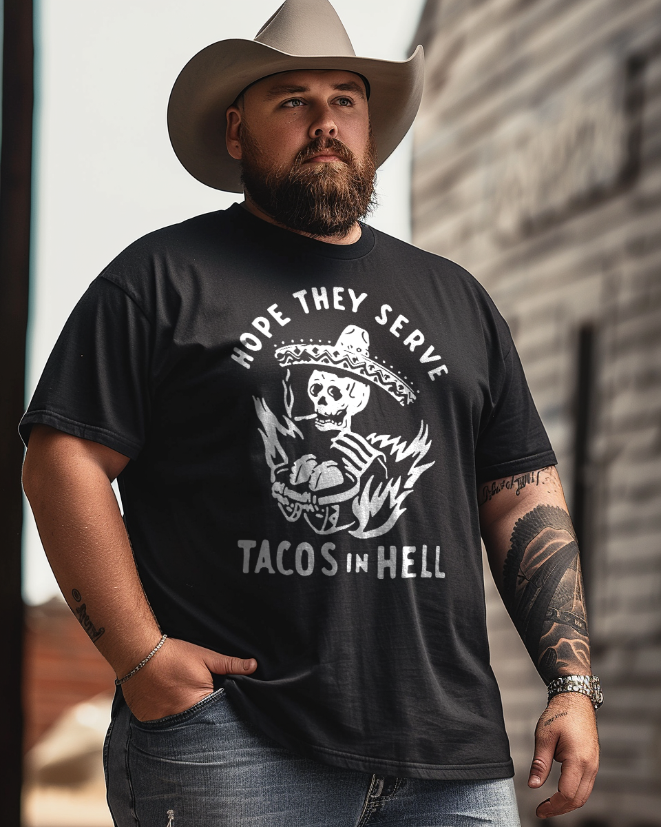Tacos In Hell, Creative Men Plus Size Oversize T-shirt for Big & Tall Man