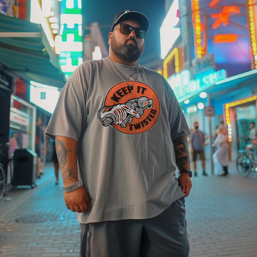 Keep It Twisted Plus Size T-Shirt, Creative Men Plus Size Oversize T-shirt for Big & Tall Man