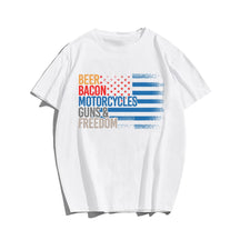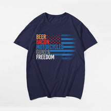 Beer, Bacon, Motorycles, Guns & Freedom T-shirt for Men, Oversize Plus Size Man Clothing - Big Tall Men Must Have