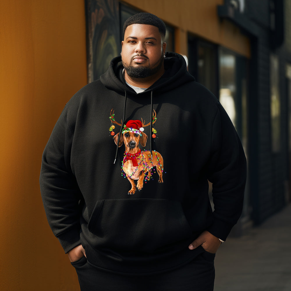 Dachshund  dog light Christmas Men's Plus Size Hoodie