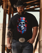 Sugar Skull Top Hat American Flag Men's Plus Size T-shirt